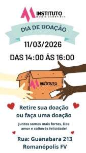 O dia de doação, é uma ação que realizamos aqui no Instituto Mariza Vicentini´s, uma vez ao mês…. atendemos famílias que se encontram em situação de vulnerabilidade social, que necessitam de doações.